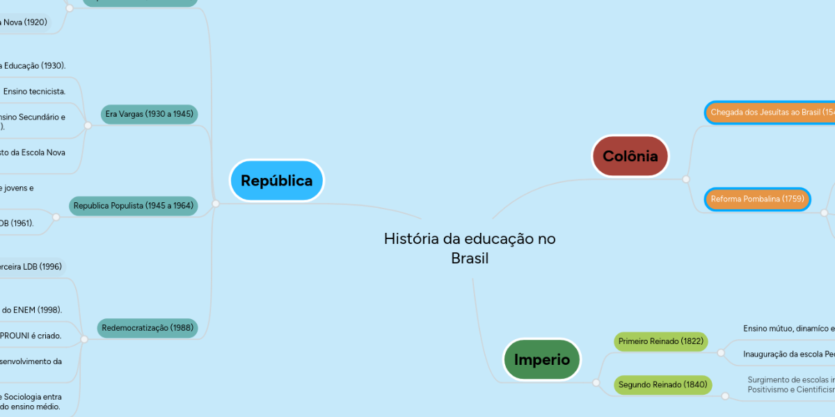 Historia Da Educacao No Brasil Mindmeister Mapa Mental